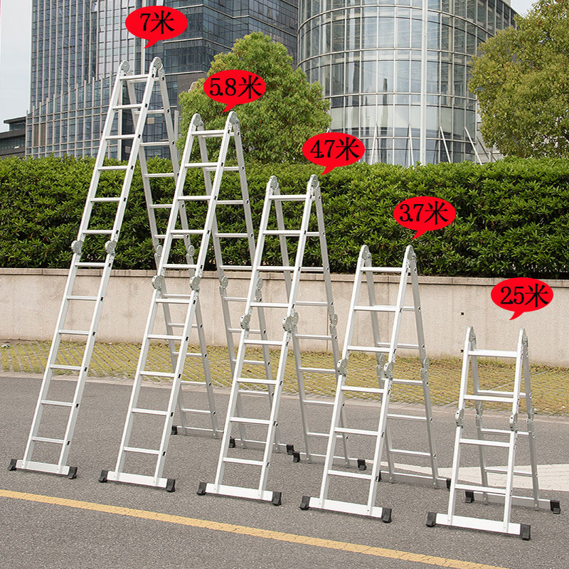 Multifunctional folding ladder aluminium alloy thickened herringbone ladder telescopic home stairway engineering loft joint ladder
