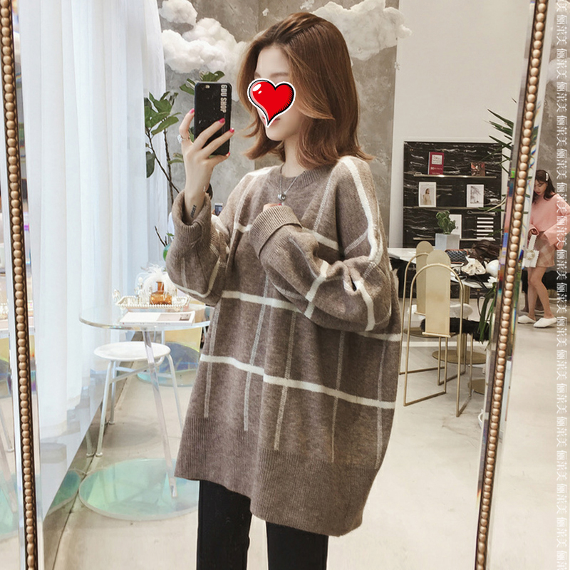 Pregnant women autumn and winter fashion style 2022 new pregnant women sweater women pullover plaid sweater bottoming loose trendy mother