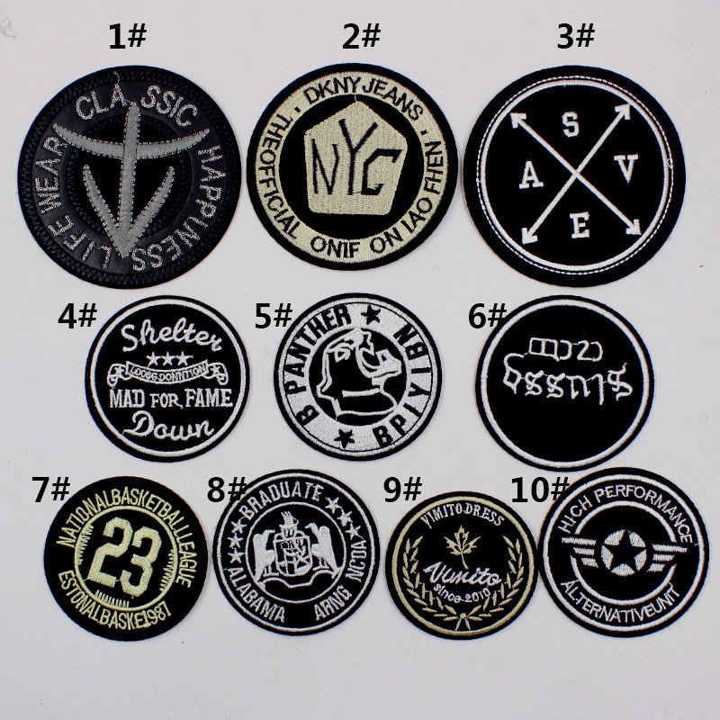 Round fashion black embroidered badge cloth patch patch clothes down decoration repair hole ironing patch