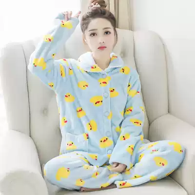 Autumn and winter thickened coral velvet pajamas women's suit home clothes plus velvet cute flannel long-sleeved spring and autumn large size