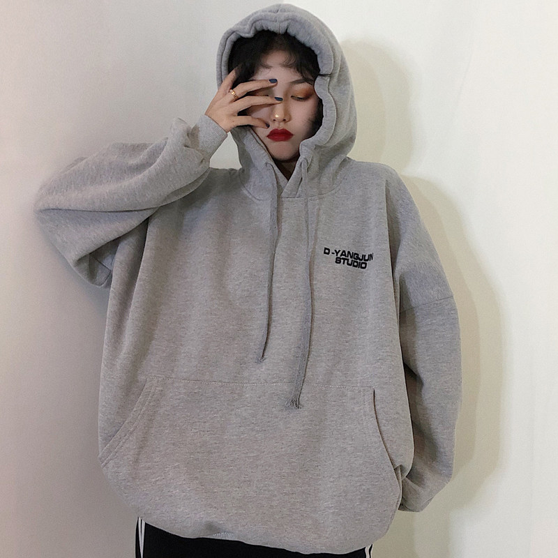 oversize Sweater 2021 new autumn and winter plus thicker Han edition loose bf hood lazy wind tide