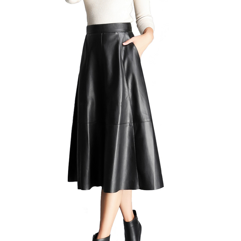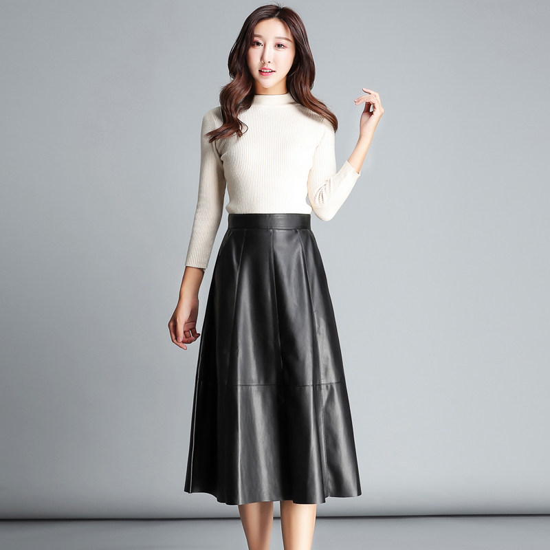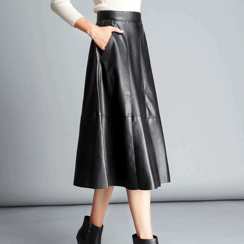 Haining leather skirt women's 2022 new autumn and winter Korean version slim A-line skirt high waist pleated mid-length skirt - Taobao