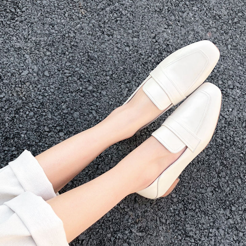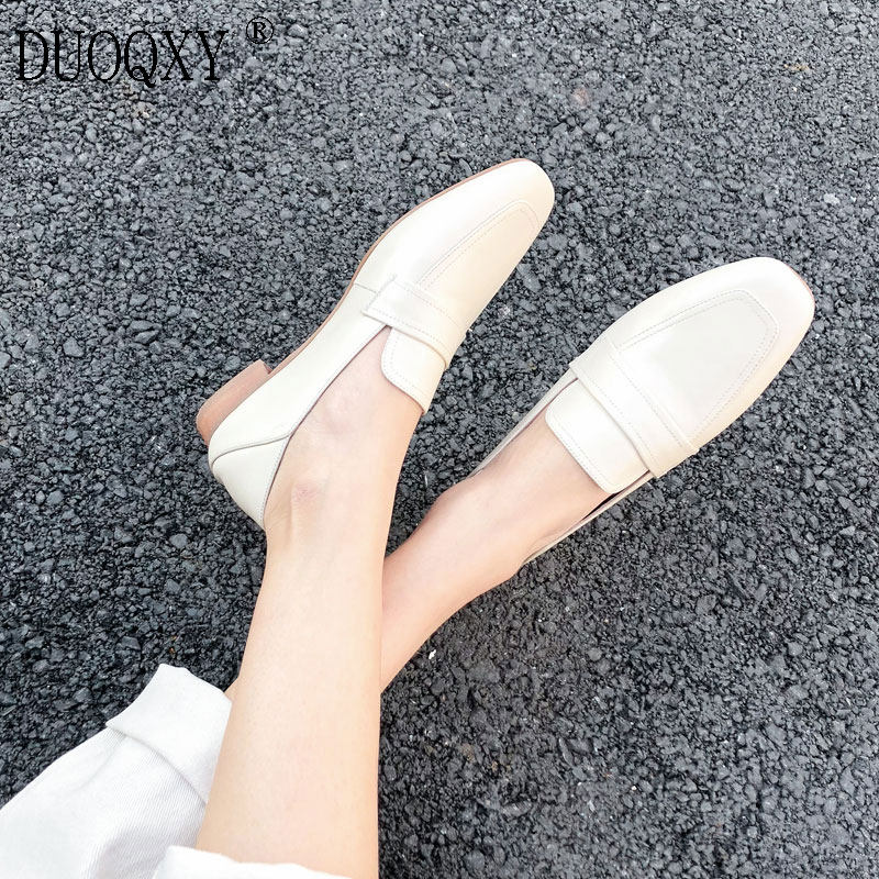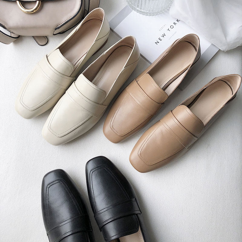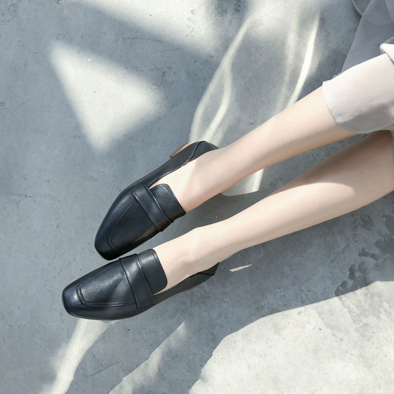 Leather white single shoes soft leather deep mouth British small leather shoes two wear step on heels lazy loafers flat peas shoes women