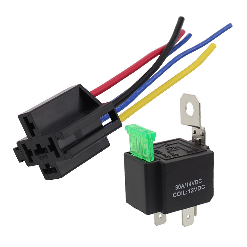 Car relay DC12V with fuse 30A insurance sheet four-foot backrest relay with socket-Taobao
