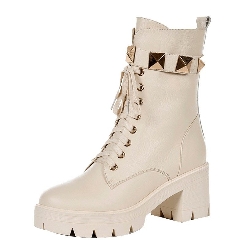 2022 Spring and Autumn New Martin Boots and Woman thick and heel heel boots real - leather English boots locomotive boots