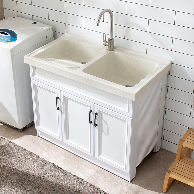 Balcony space aluminum laundry cabinet combination single cabinet laundry basin Double slot washbasin sink sink basin Floor-to-ceiling bathroom cabinet with washboard