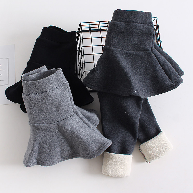 Girls plus velvet thick underwear autumn and winter children's culottes fake two pieces of baby cotton all-in-one velvet pants