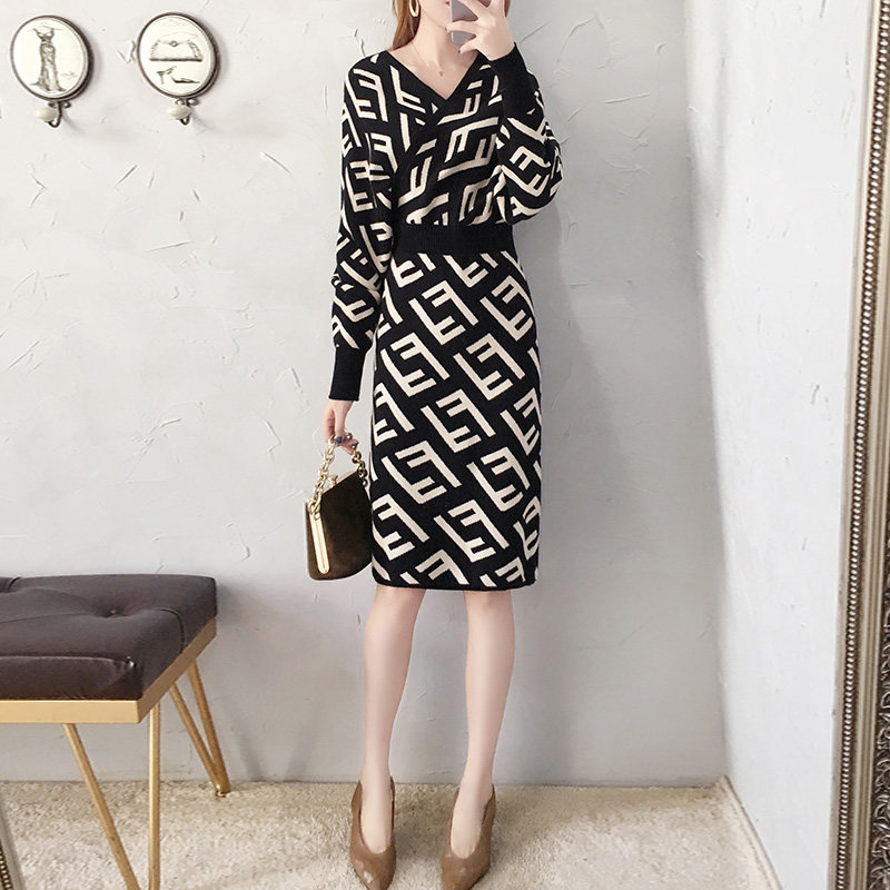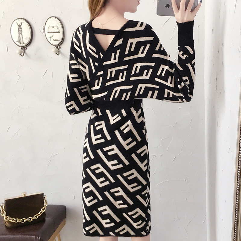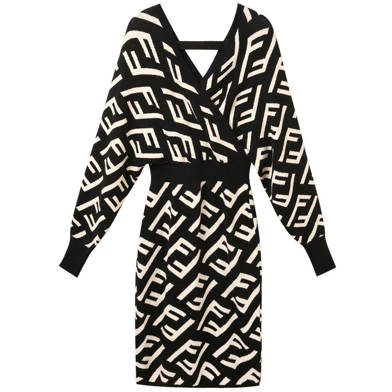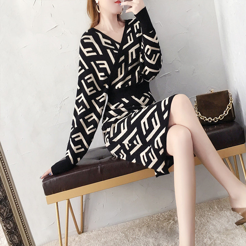 2022 Fall New Fashion Knit Ocean Dress V Collar Inner Hitch Bottom Thickened Sweater Dress Children Fall Temperament