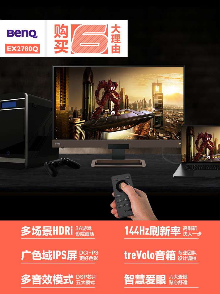 BenQ 27-inch 2K 144Hz monitor IPS gaming EX2780Q size King Kong HDR400 gaming 10bit PC P