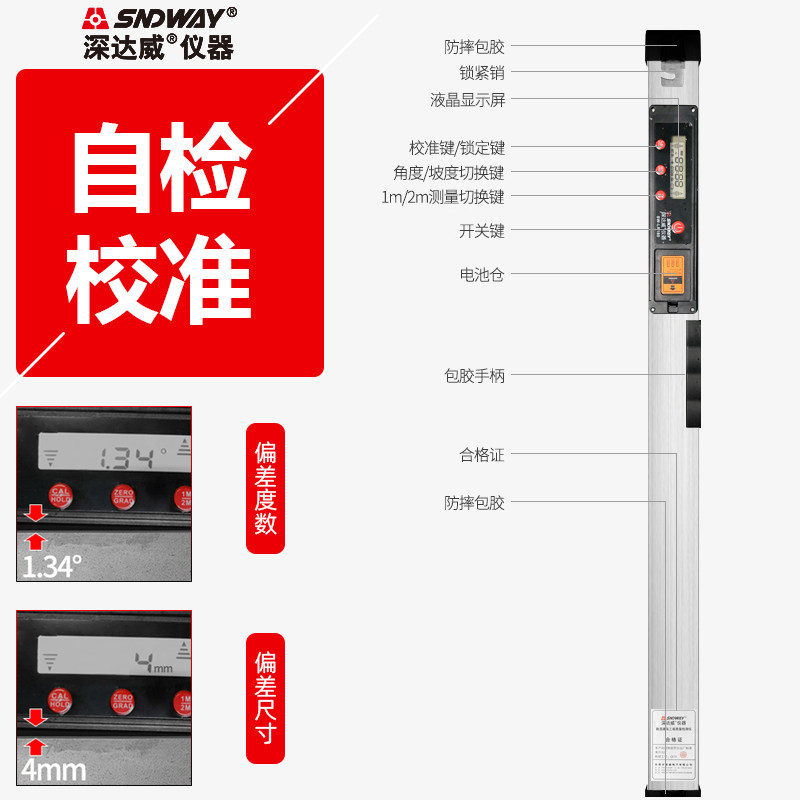 Deep Dawei 2 meters digital display ruler SW-LR180 inspection tool level ruler Electronic angle engineering inspection ruler