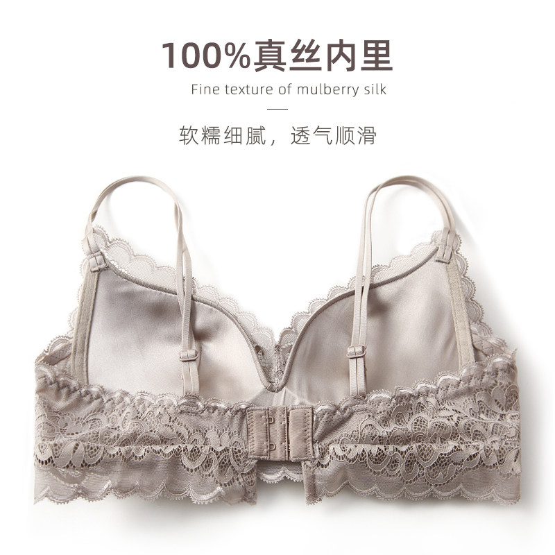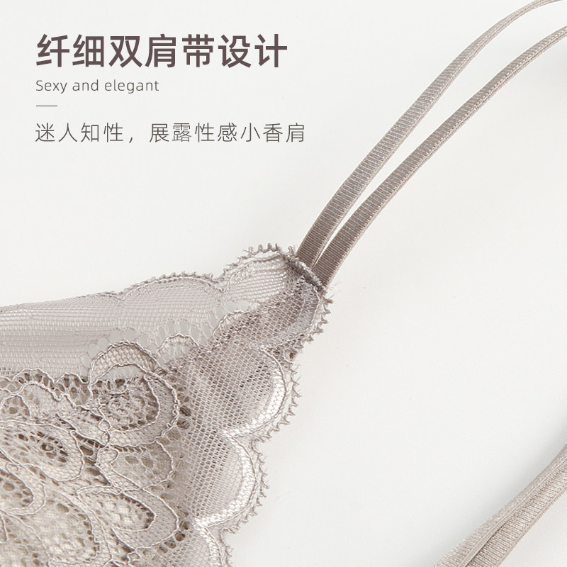 Underwear women's no steel ring bra gathered thin section small chest thin straps sexy lace comfortable zero bondage silk bra