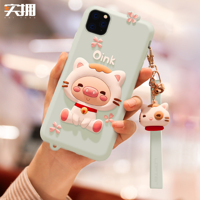 Apple 11 mobile phone case cute iPhone 11 promax silicone shell anti-fall new maxpro soft all-pack cartoon female new por protects creative girl pink fresh hanging