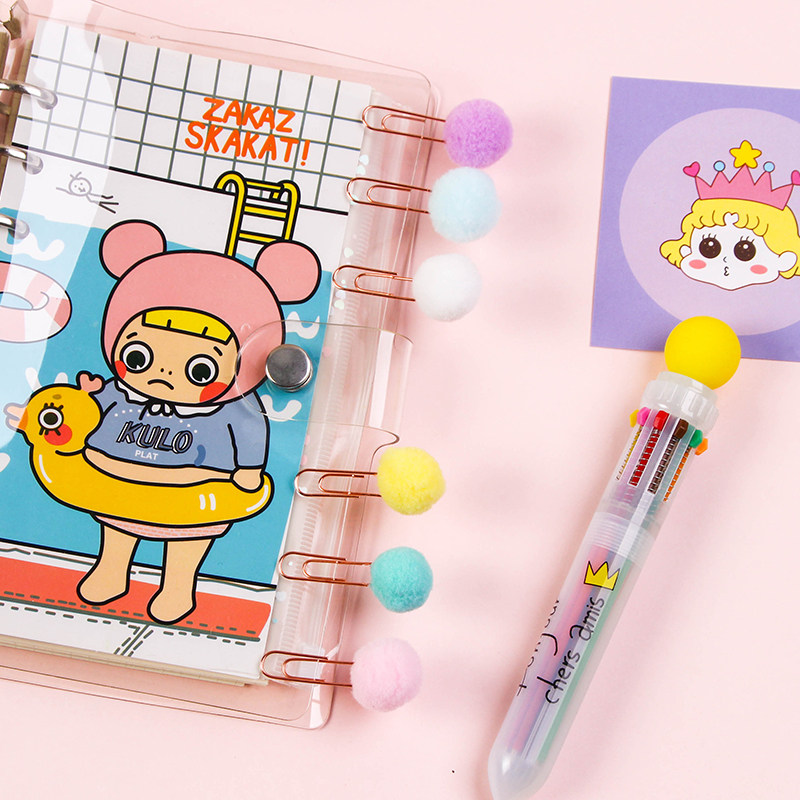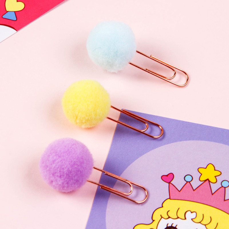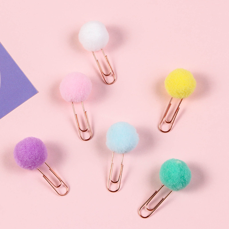 Cute Little Clear New Candy Color Hair Balls Back Tattoo Creative Metal Color Bookmark Back Tattoo Note Book Page Clips