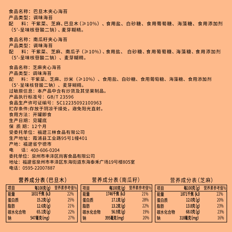 Sesame sandwich seaweed crispy canned Badanmu seaweed slices Instant gratification net red snacks Snacks Snack food