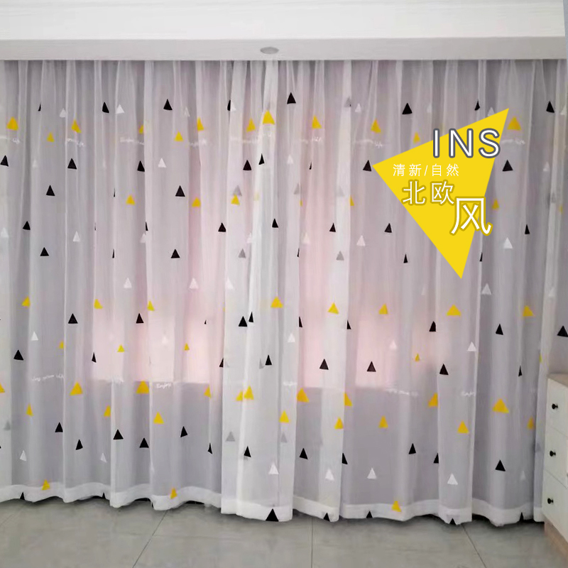 Nordic net red money ins minimalist bedroom living room small frescoed grey cloth yarn integrated double curtain yarn blinds shade