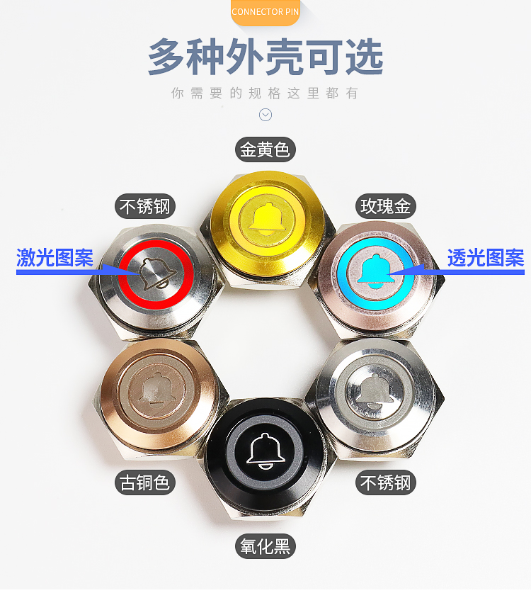 Ultrathin metal button stainless steel waterproof self-reset doorbell light switch custom metal button bicolor color