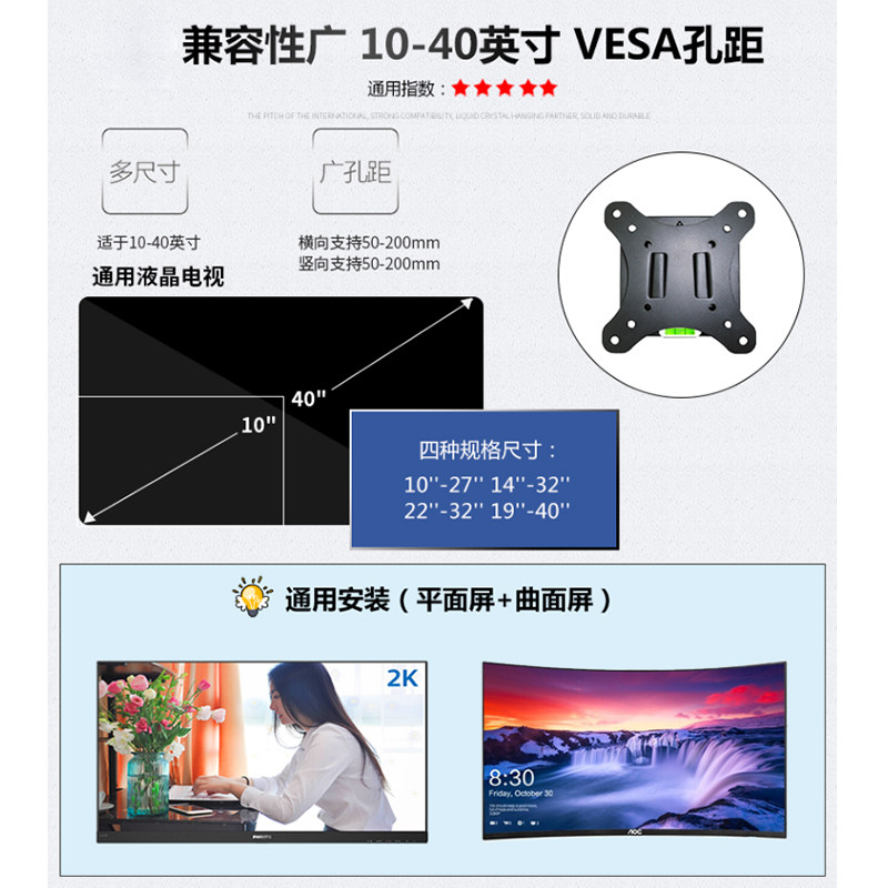 Vegalan 10-32 inch liquid crystal computer screen holder wall-mounted Xiaomi AOC Samsung Philips TV hanging rack