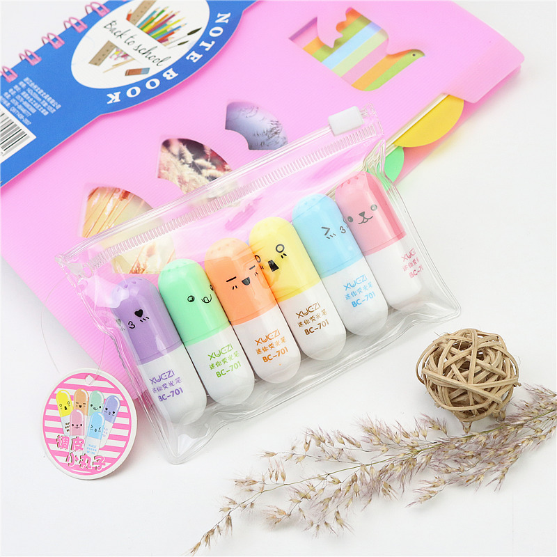 Cute pills Capsule Fluorescent Pen Student Mark Marker Pen Child Bright Crystal Flash Pen Cartoon Graffiti Pen