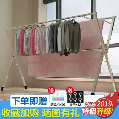 Folding clothes hanger floor-to-ceiling bedroom household double-pole clothes balcony simple cool clothes rack stainless steel telescopic drying rack