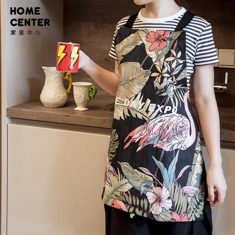 Home Center Fashion Sensation Printed Pattern Black Apron home Kitchen Men And Women Universal Cotton Twist Thickened