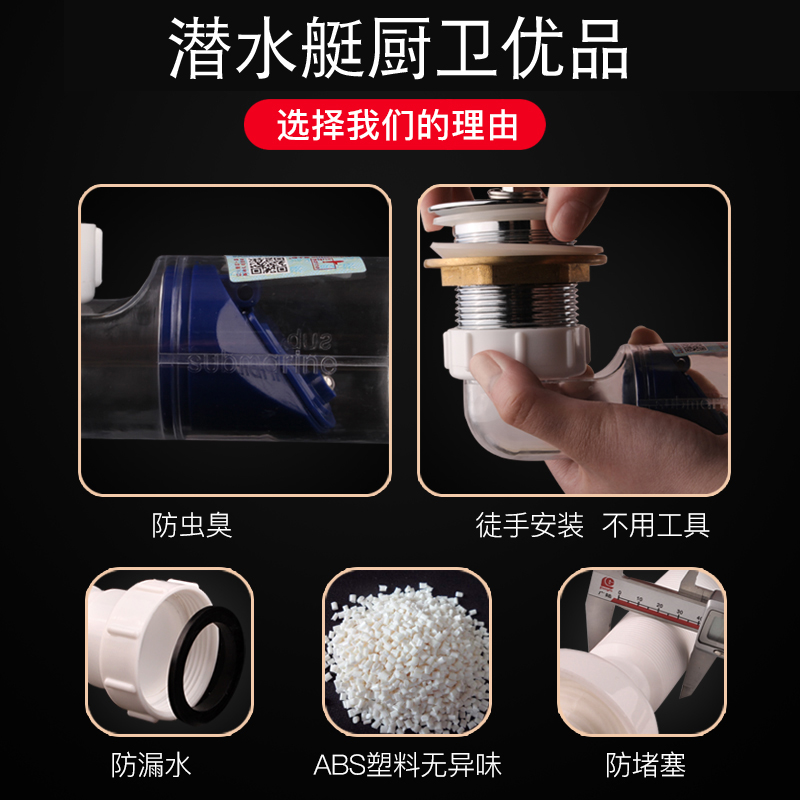 Submarine washbasin anti-odor sewer washbasin washbasin countertop sink sewer full set of wash basin drain pipe fittings
