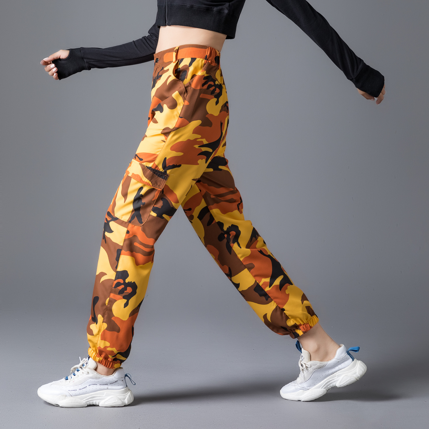 New Rui dance slim orange camouflage 1902 models line dance aerobics street dance dance outdoor sports square dance pants