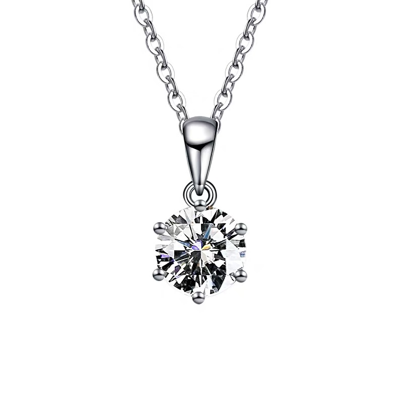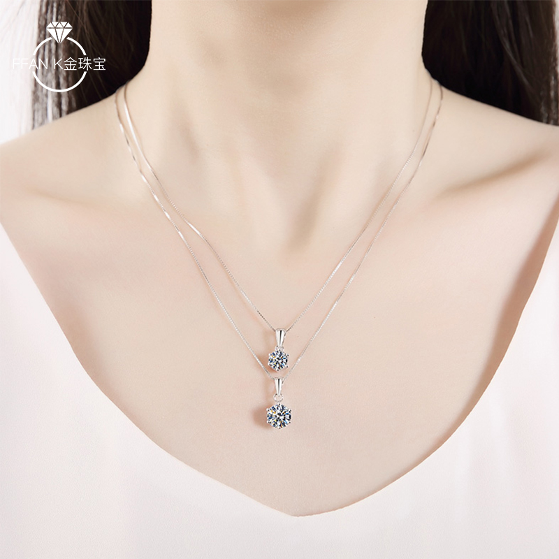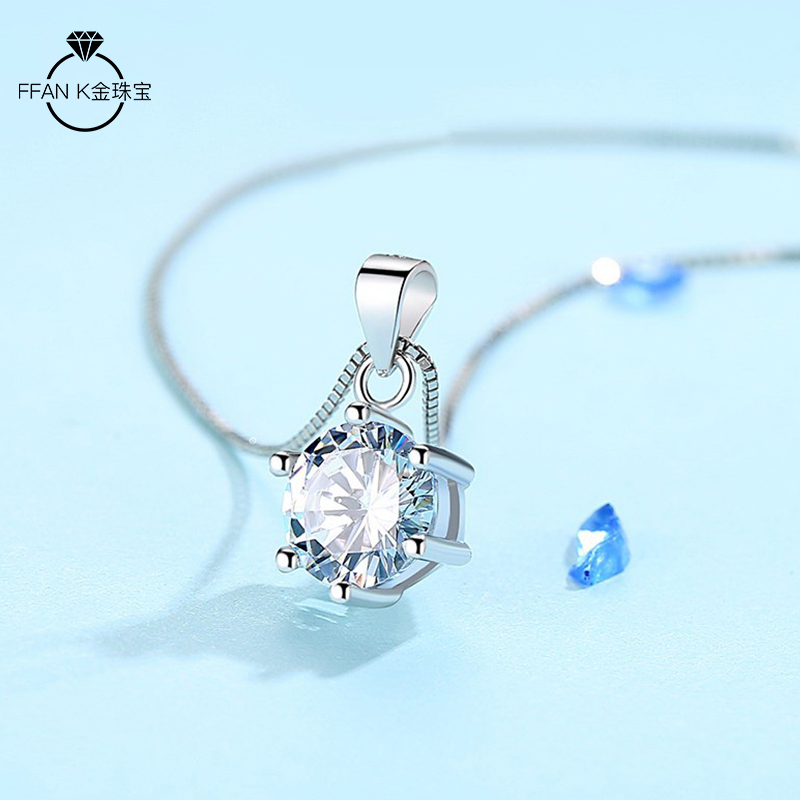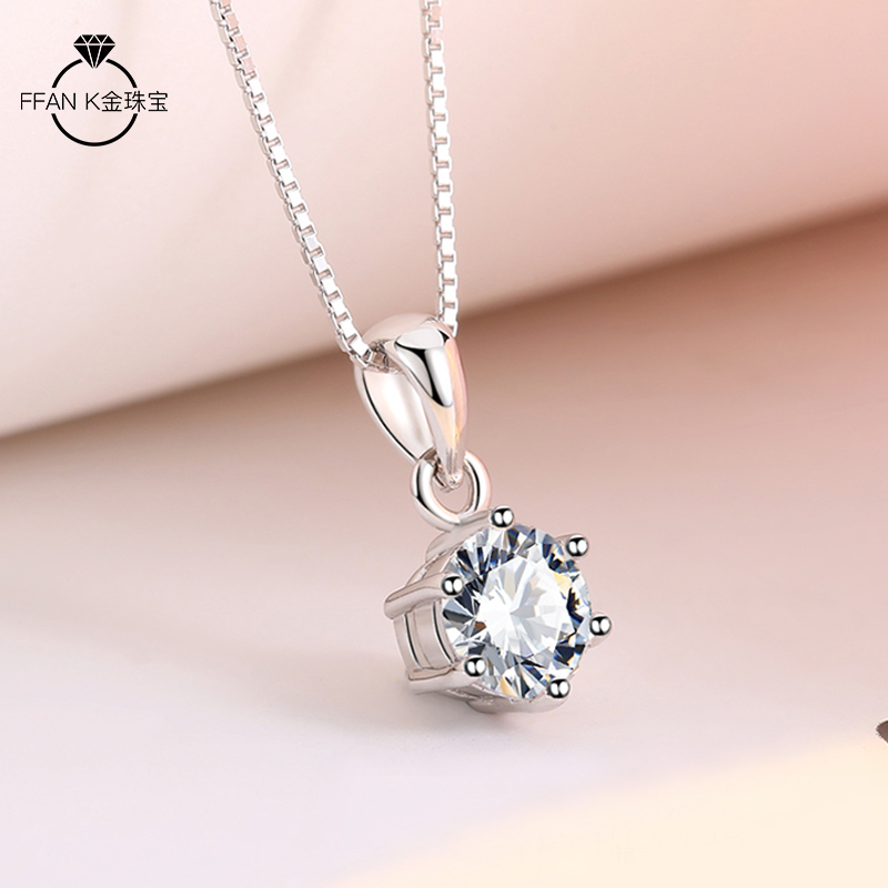 Platinum necklace female classic simple six-claw single diamond pendant imported moissanite simulation diamond clavicle chain set chain female