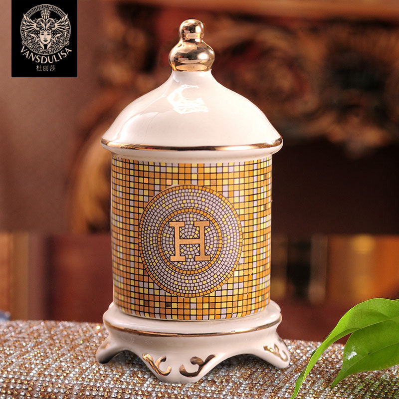 Pagoda-style creative European-style ceramic toothpick barrel high-end bottle living room box dining table can household cotton swab barrel simple barrel