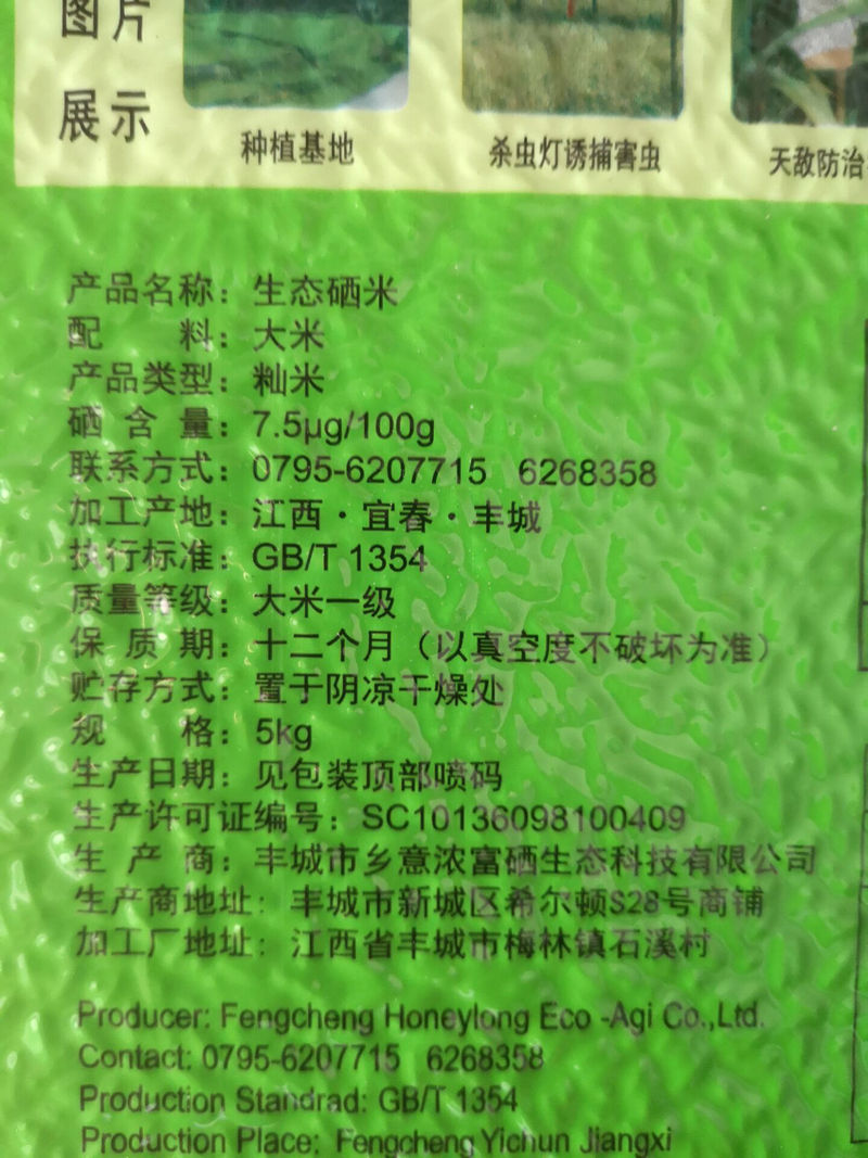 Jiangxi Rice Township of Yesong Ecoselenium Mifeng City Rice 5Kg No Add Rice Natural Selenium cultivation for 10 kilos