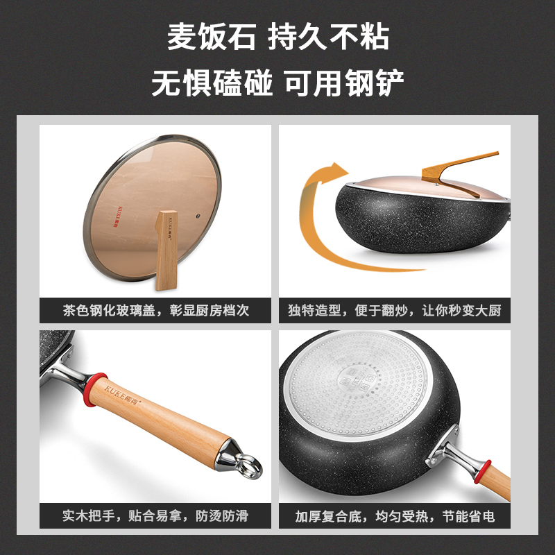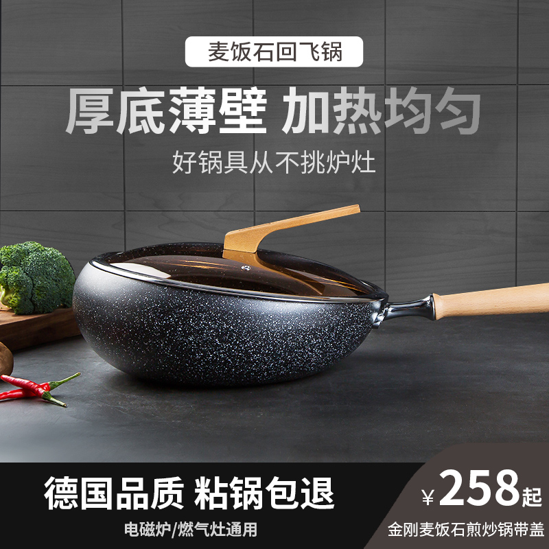 32CM wok stainless steel glass cover (electromagnetic gas universal) gift 32 white fly-back pot (for 3-8 people) 30 black fly-back pot (for 2-5 people) 30