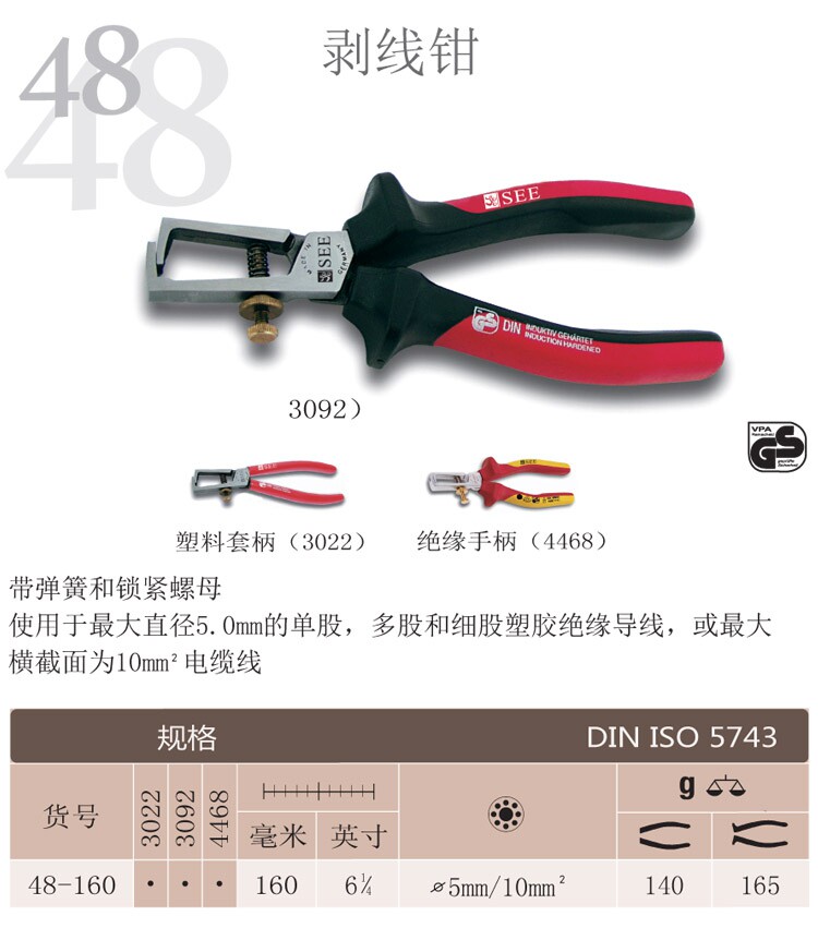 German import swordplay SEE insulated exfoliating pliers 6 inch 160mm 1000V adjustable stripping wire pliers 5-10mm