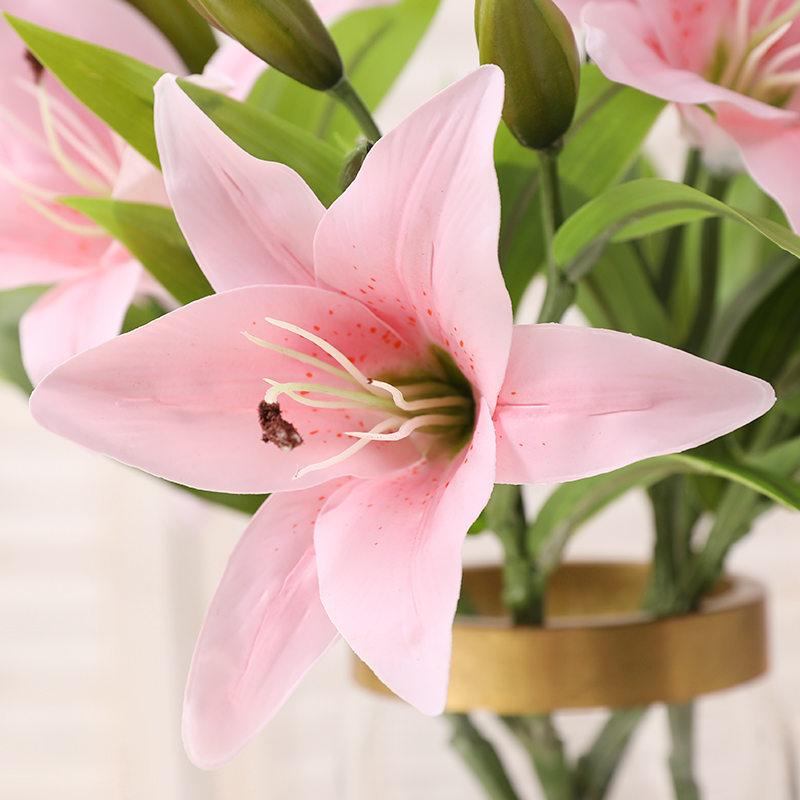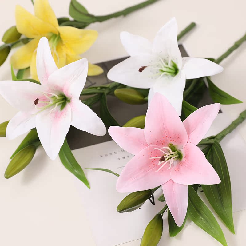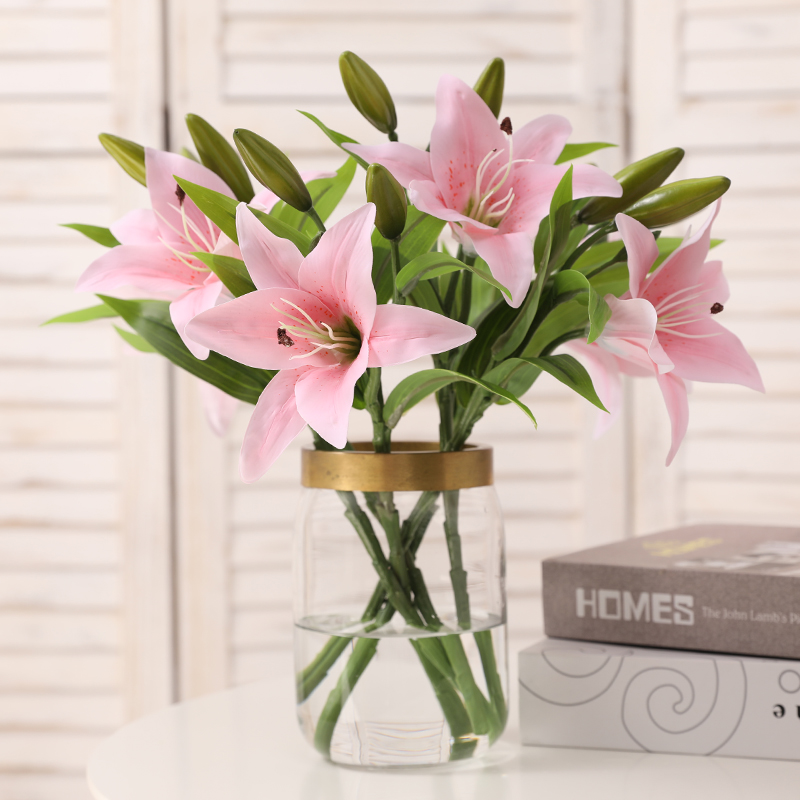 Thai ring 3 heads of lily imitation flower single high-grade feel fake flower living room dining table placed modern simple decoration