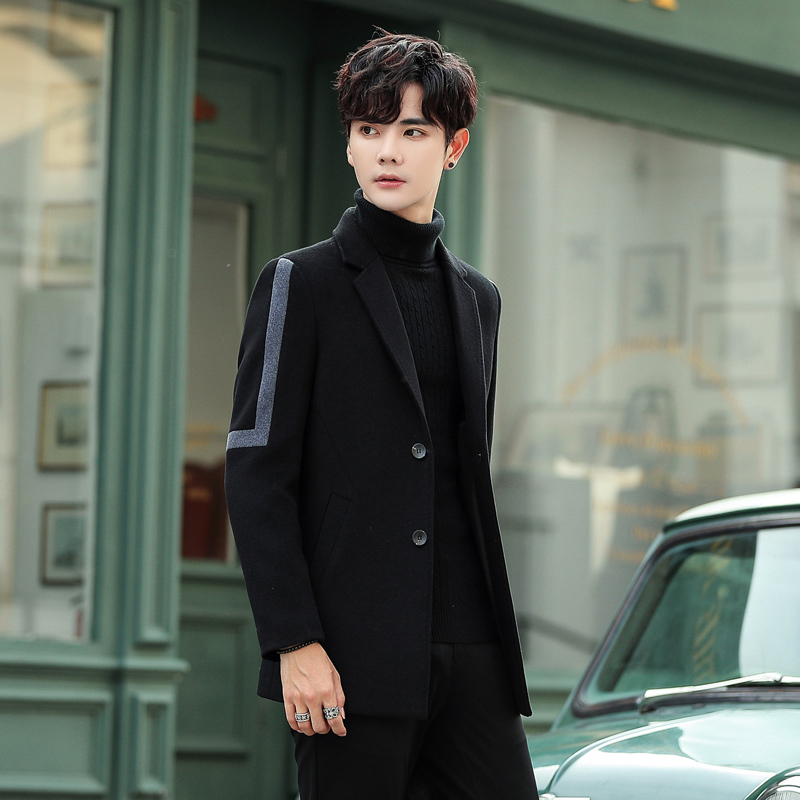 Autumn and winter trends Son Coat Men's Wool Coats Mid short black Wind Closet Han version Shuts up for students