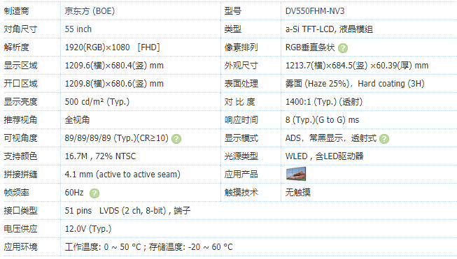 DV550FHM550-NV0 DV550FHM550-NV0 NV3 BOE 55 inch liquid crystal splicing screen 3 5mm Patchstitch BOE NV8