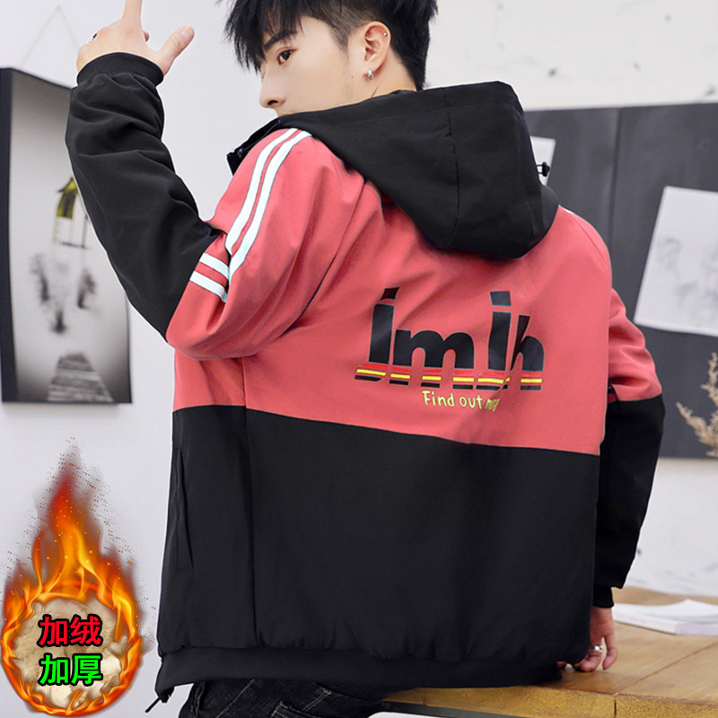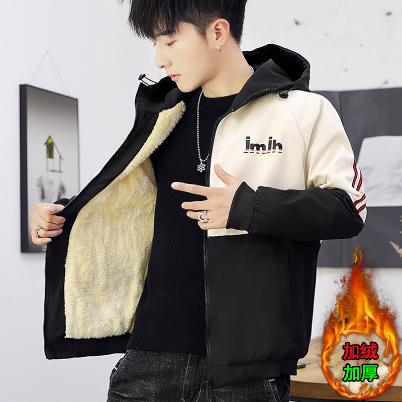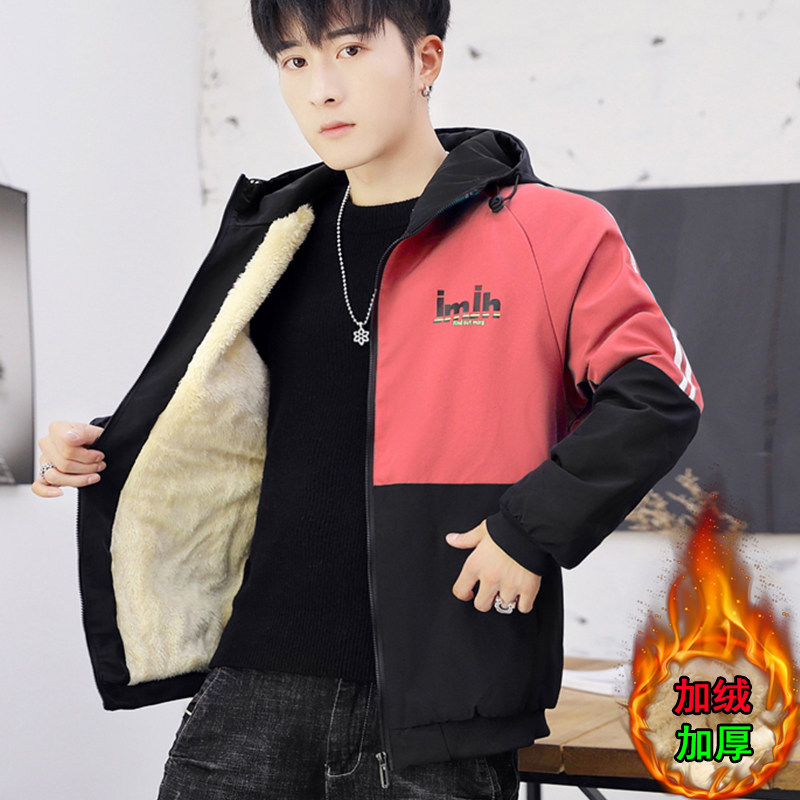 Jacket men's winter youth plus velvet thickening men's plus cotton winter clothes warm tooling stitching student autumn and winter jacket