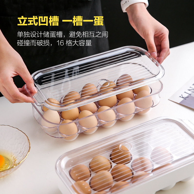 Kawadao House refrigerator egg collection box drawer kitchen food preservation box plastic seal with lid 16 eggs