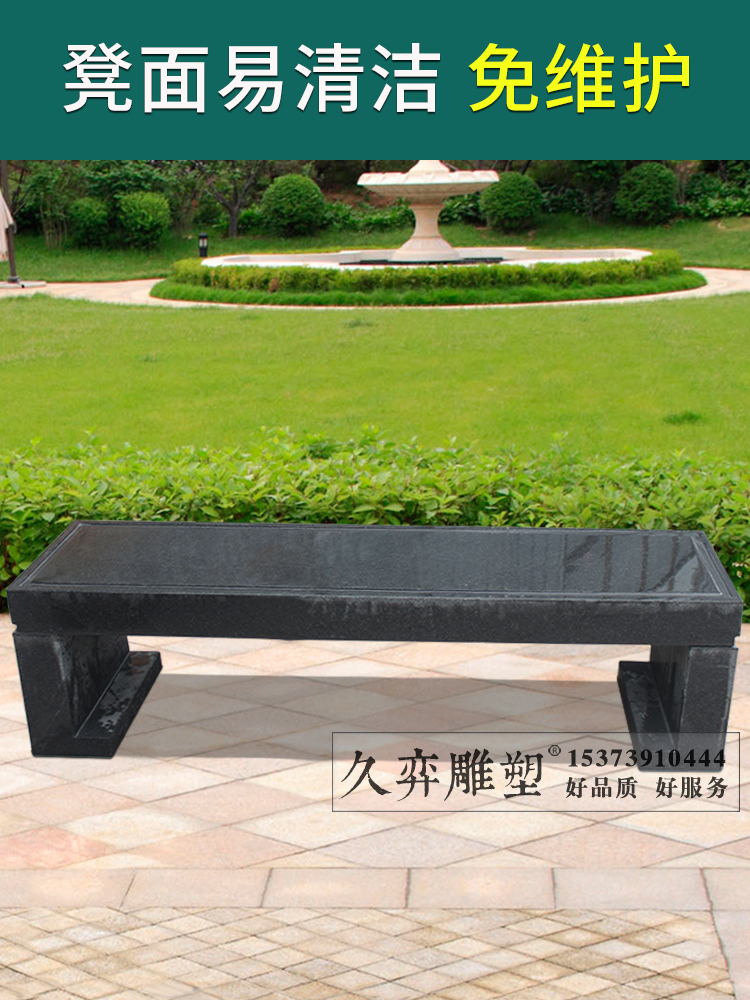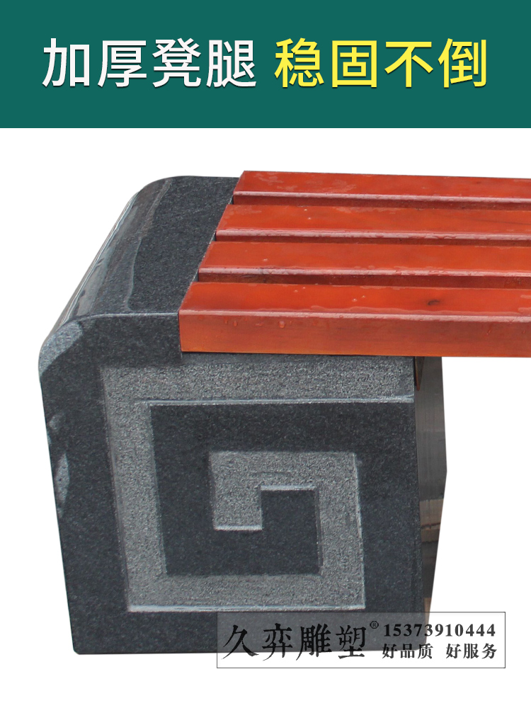 Long stone bench courtyard park leisure anti-corrosion wood stone carving seat back stone chair outdoor granite stone chair