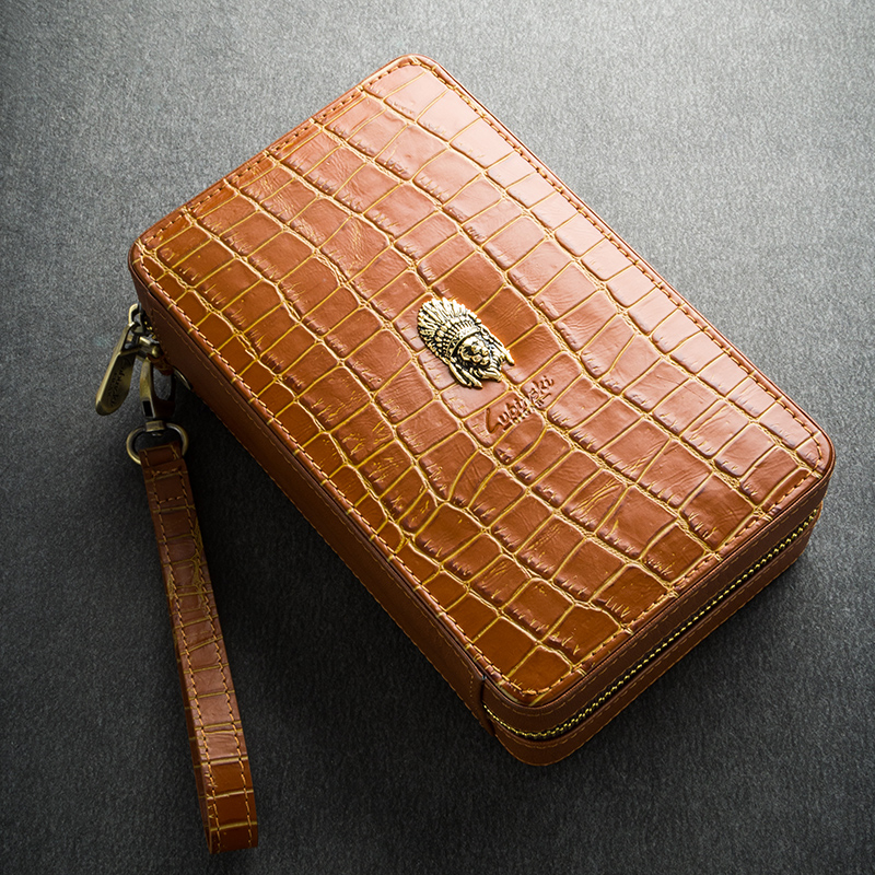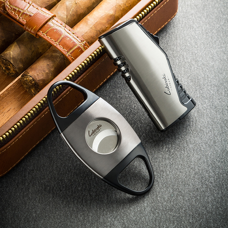 LUBINSKI Portable Cigar Case 4 Pack with Drill Cigar Scissors Cedar Humidor