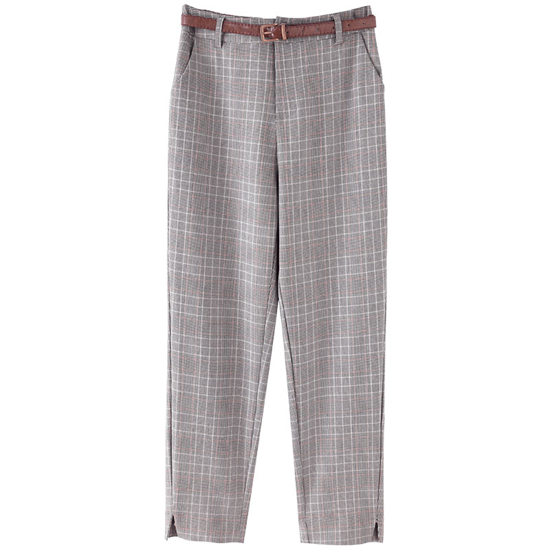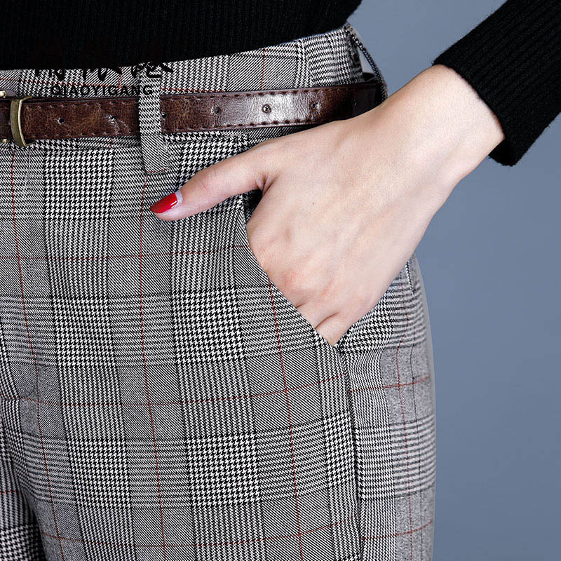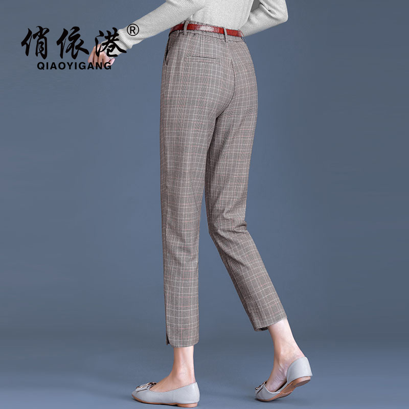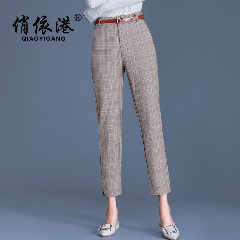 Large size plaid pants women's spring and autumn Korean version British style small feet casual pants fashion loose and thin nine points casual trousers