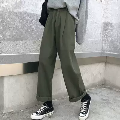 Spring and Autumn Korean version 2021 New retro harbor style chic loose high waist straight wide leg black jeans women's pants