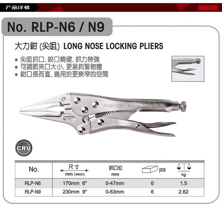 RLP-N6 sharp mouth vigorously pliers 150mm 6 inch RLP-N9 sharp mouth vigorously pliers 230mm 9 inches