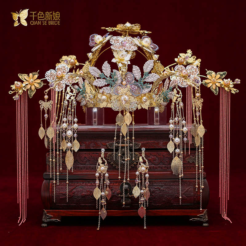 Bridal Headwear Chinese Style Pineal Crown Ancient Dress Hair Accessories 2022 The new show and the dragon and phoenix hanging accessories Ziqing
