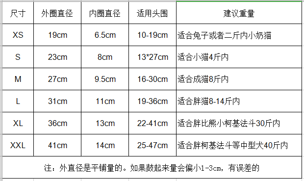 XS-suitable for rabbits or small milk cats within 2kg S-suitable for Xiao Mao within 4kg M-suitable for adult cats within 8kg L-suitable for fat cats within 8kg XL-suitable for fat cats within 8kg XL
