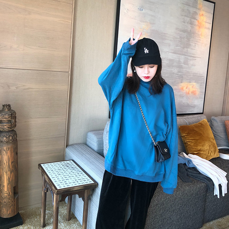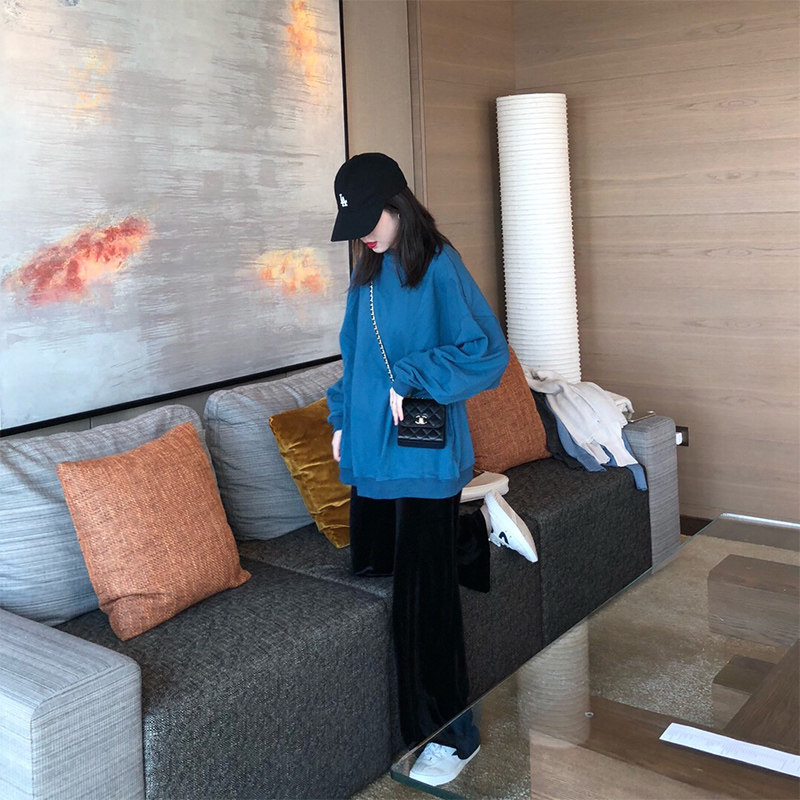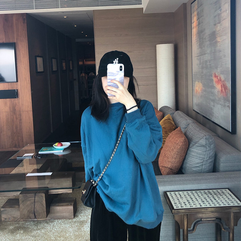 Via Vela sweater women 2021 new fashion loose Korean edition bf lazy wind long-sleeved round neck cotton blue jacket