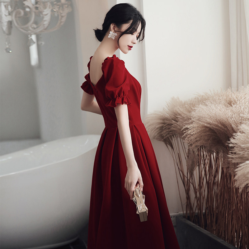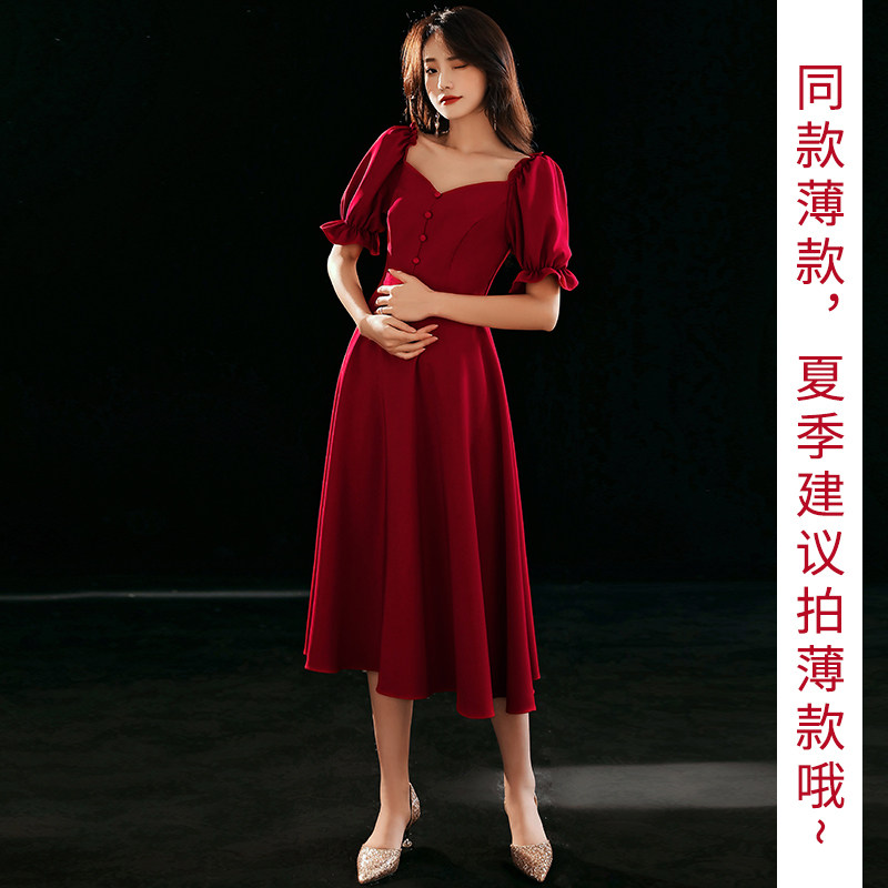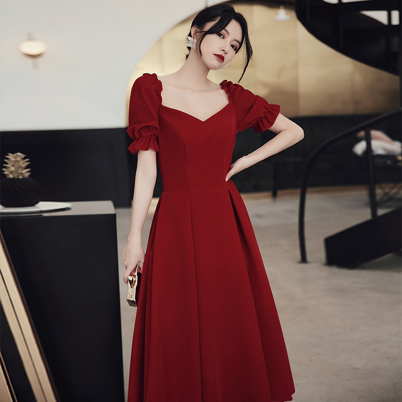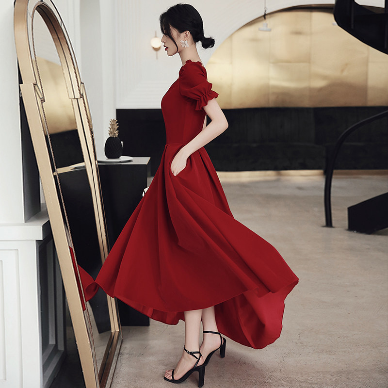 Wine red medium and long version Satin wine Red French pearl skirt Wine red front short back long Satin wine red front short back long suede (size larger) Wine Red Qi suede (size larger