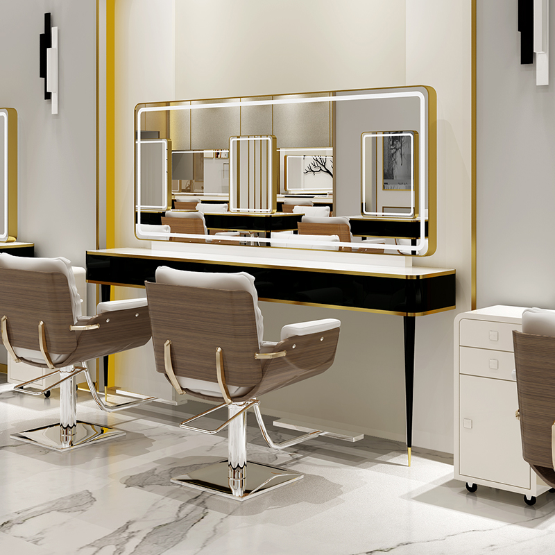 Beauty shop mirror table Net red hair salon Hot dyeing area Mirror table with lamp Hair salon special mirror Photo studio makeup mirror New