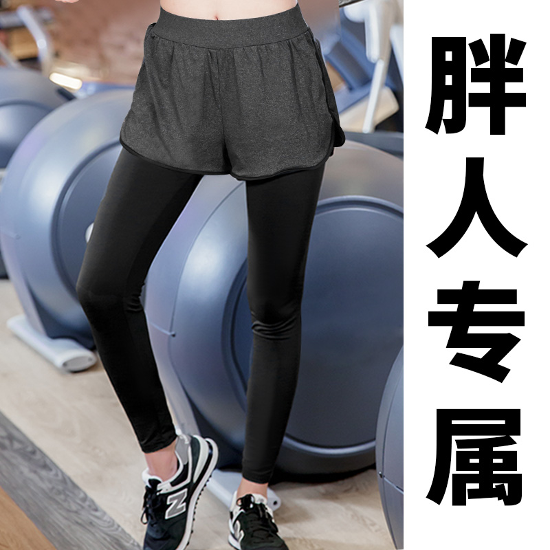 Thin large size yoga suit sports pants women's pants Fat MM fitness running room 200 pounds tight three-point pants