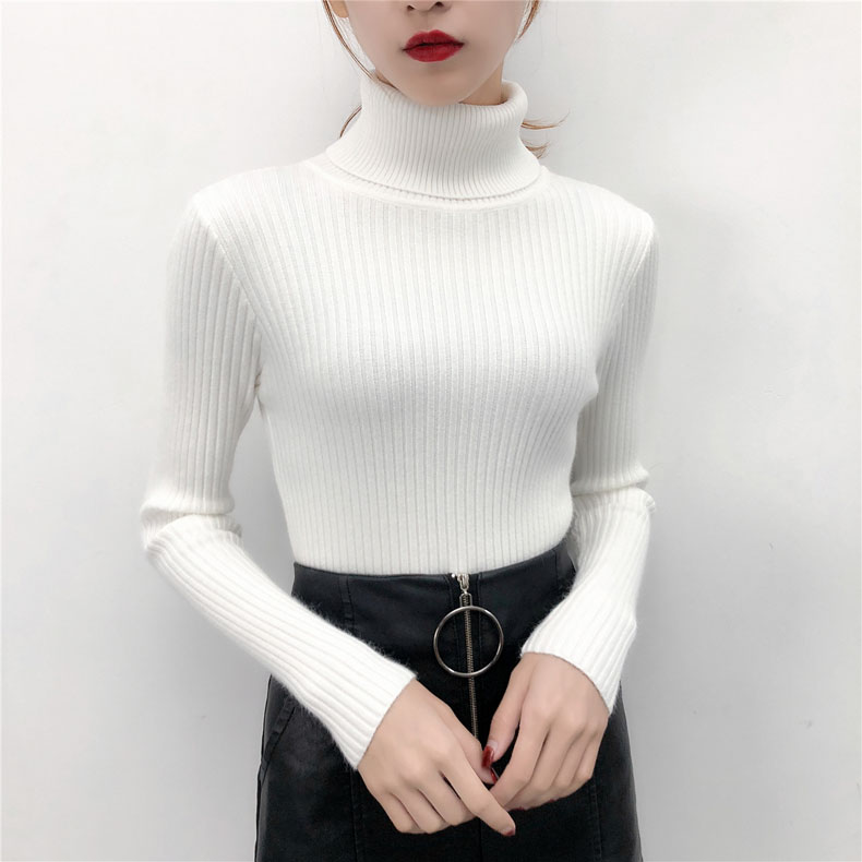 Turtleneck thickened sweater female pullover Korean version of the wild slim-fit base shirt autumn and winter models with elastic knitted tops