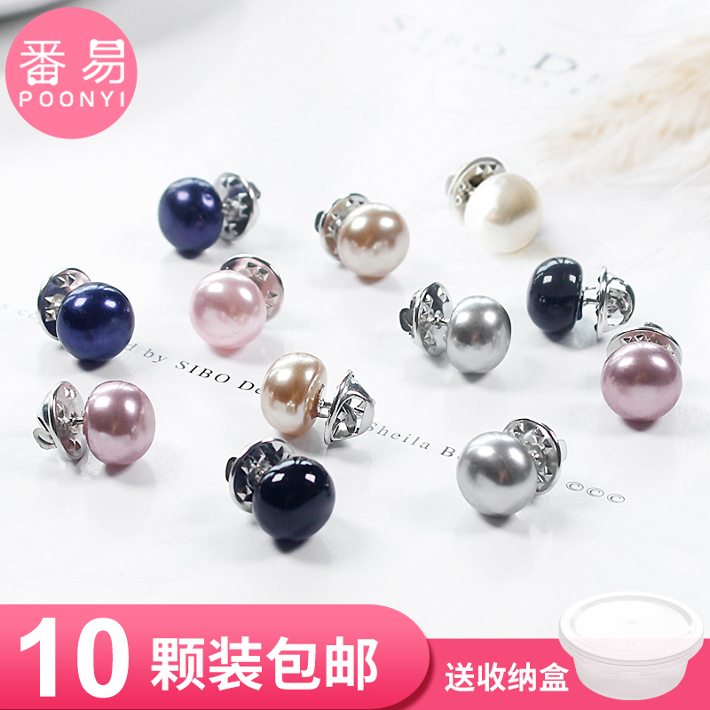 Anti-glare buckle Small brooch Neckline pin seam-free shirt clothes fixed buckle Invisible pearl small dark button decoration