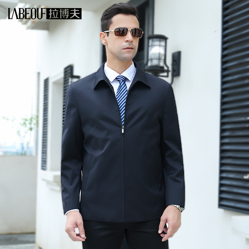 LaBeouf High-end Spring and Autumn 100% Pure Wool Jacket Men's Thin Jacket Lapel Executive Large Size Loose Men's Top